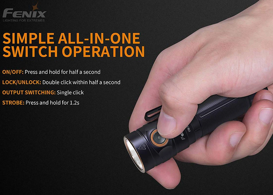 Strobe: 1.600 LumenHinweis: Die oben genannten Daten wurden im Fenix Labor mit dem Fenix ARB-L18-3500 Akku bei 21±3° und 50% – 80% Luftfeuchtigkeit ermittelt. Sie können je nach Taschenlampe, Akku, Umgebung und Alter variieren.