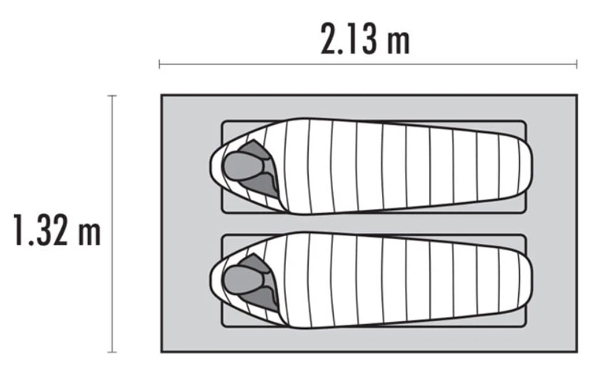 - Bodenfläche 213*132 cm. Auch grössere Menschen passen hinein, es macht ja nichts, wenn z.B. das Schlafsackfußende ans Mesh kommt – kein kondensnasses Außenzelt, an das mensch kommen könnte