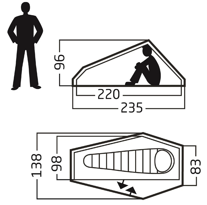 Außenzelt: 235 cm * 138 cm * 96 cm
