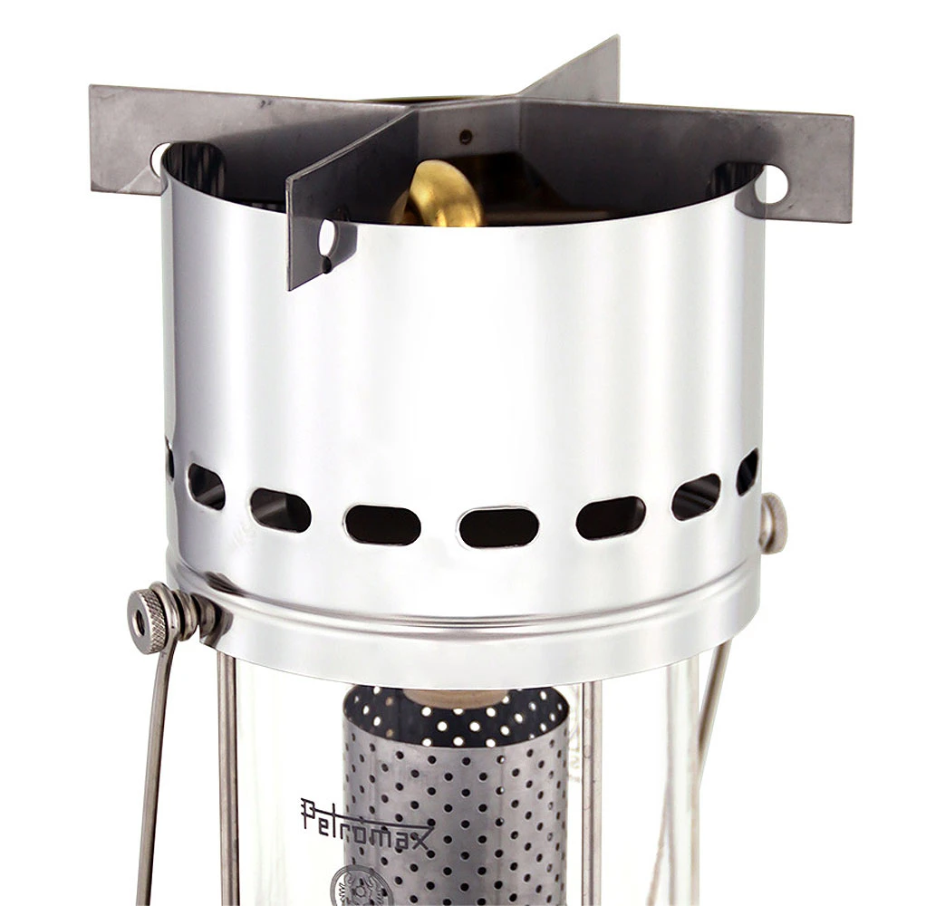 Um die Hitze der Lampe optimal zu nutzen, kann der Kochaufsatz durch den Petromax Radiator ergänzt werden, da dieser die Hitze noch stärker nach oben abstrahlt.