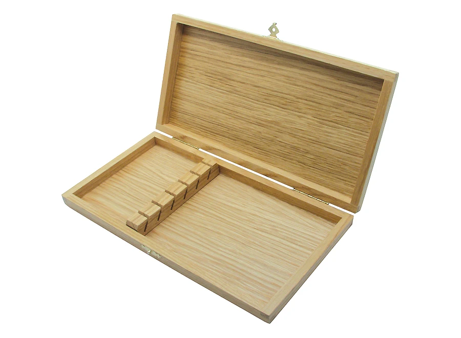Holzsteg im Inneren um sechs geöffnete Messer zu platzieren und zu fixieren