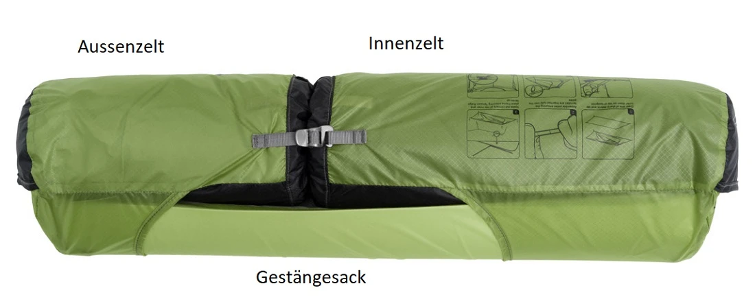 - Die Zeltpacksäcke können als Zusatznutzen im Innenzelt mittels Druckknopf als Kleinkram-Taschen fixiert werden