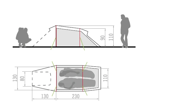 - Material Außenzelt: 100% Polyester 70D 185T, Polyurethane 3000 mm